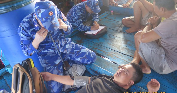 Lực lượng cảnh sát biển kiểm tra sức khỏe các ngư dân gặp nạn trên biển