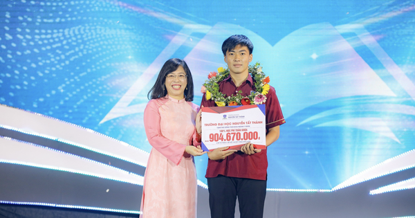 TS Trần Ái Cầm, Hiệu trưởng Trường ĐH Nguyễn Tất Thành trao học bổng toàn khóa cho thủ khoa ngành Y khoa với giá trị trên 900.000.000 đồng