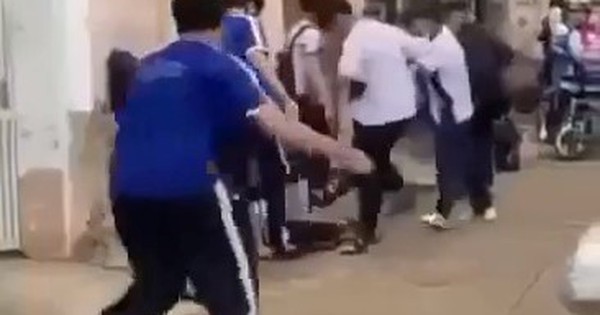 Đoạn clip ghi lại vụ việc cho thấy, em Đ. bị nhóm học sinh mặc đồng phục trắng và xanh lao vào tấn công. Lúc này, có ít nhất 4 nam sinh ép nam sinh này vào tường và liên tiếp dùng mũ bảo hiểm, tay đánh tới tấp.